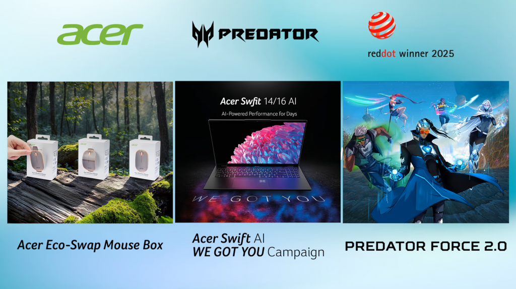 Acer anunció que sus campañas de marketing y su innovación en empaques fueron reconocidas con los prestigiosos Red Dot Brand & Communication Design Awards 2025, que celebran la excelencia en estrategia creativa, narrativa y sostenibilidad. Las piezas ganadoras reflejan el impacto y la relevancia de la marca Acer en torno a temas como gaming, empoderamiento a través de la IA y conciencia ecológica.