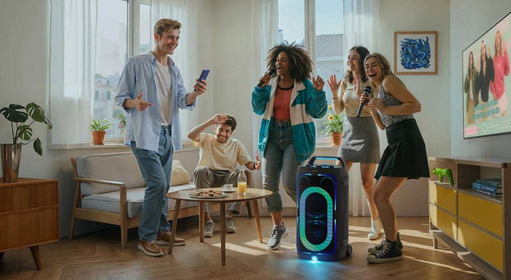 Pero diciembre sabe también a tradición y a diversión improvisada. ¿La prueba? El karaoke, o como decimos en Latinoamérica, ¡la parranda! Y aquí la Samsung Sound Tower brilla sin esfuerzo, con la capacidad de transformar cualquier evento en una «Jam Session».