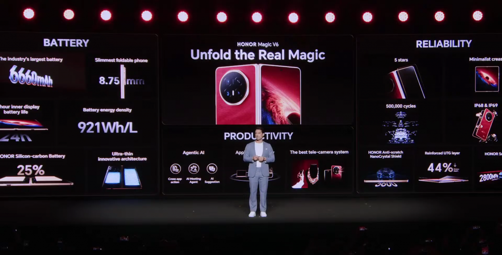 El HONOR Magic V6 representa la convergencia perfecta: el primer plegable con el CPU móvil más rápido del mundo, batería Silicon-Carbon líder en capacidad, bisagra del acero más resistente comercialmente disponible y pantallas que alcanzan 6000 nits. No es solo el plegable más potente, es el más completo, diseñado para resistir y ayudar en la era de la AI sin comprometer elegancia ni portabilidad.
