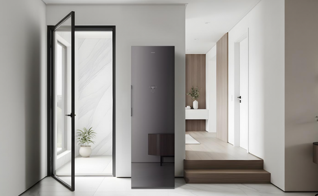 Una característica destacada es su sinergia con Bespoke AI Laundry Combo. El Auto Cycle Link recomienda un ciclo de secado adecuado en Air Dresser una vez finalizado el ciclo de lavado. Al seleccionar en el Combo ciertos ciclos diseñados para cuidados especiales —como el Blouse Cycle (Ciclo para Blusas)—, la misma opción se encola automáticamente en AirDresser, creando un flujo continuo de cuidado de las prendas. El diseño renovado también incluye una elegante puerta de un solo cuerpo y una pantalla LCD de 2,8″ para un mejor uso.