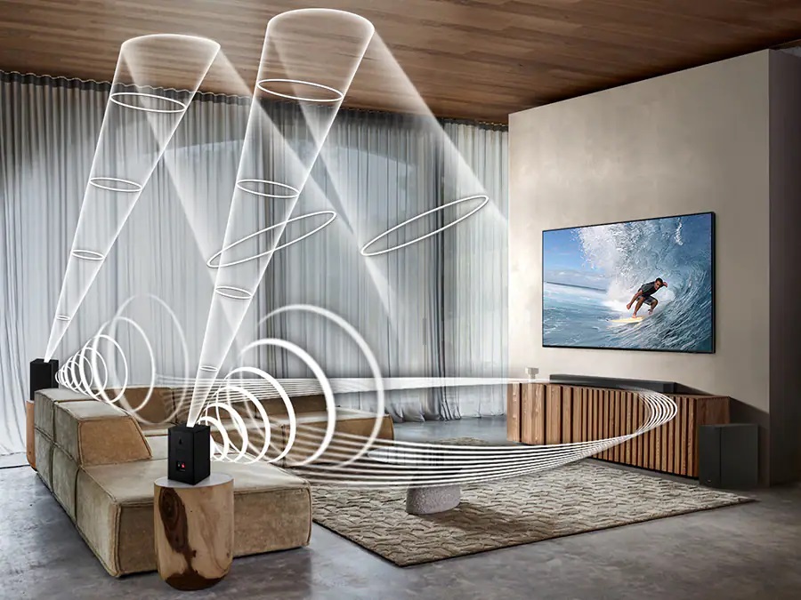Los modelos de barras de sonido para TV de Samsung, como Q990F, Q930F y Q800F, con inteligencia artificial, también cuentan con la tecnología SpaceFit Sound Pro, que analiza el espacio y ajusta el audio para ofrecer graves optimizados. Además, con el Amplificador de Voz Activa Pro (AVA), el usuario puede disfrutar de diálogos más claros, incluso cuando hay ruido ambiental o sonidos de fondo en el contenido que esté viendo. Juntas, las soundbars y las TVs de Samsung brindan una experiencia sonora reconocida por la prensa especializada, combinando IA, sonido adaptativo e integración perfecta.